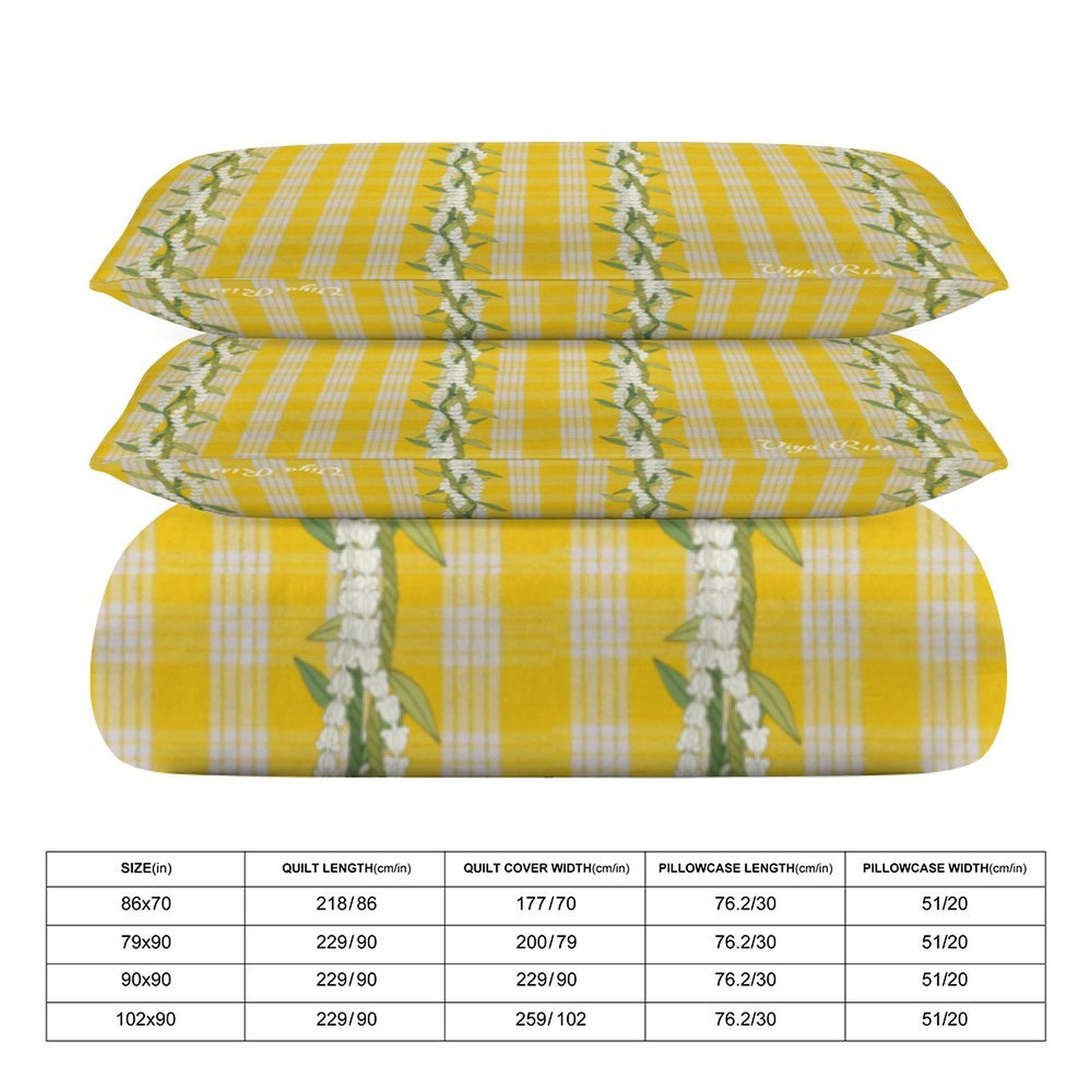 3 piece Bedding Set- Yellow Palaka and Crown Flower Entwined with Ti Leaf