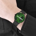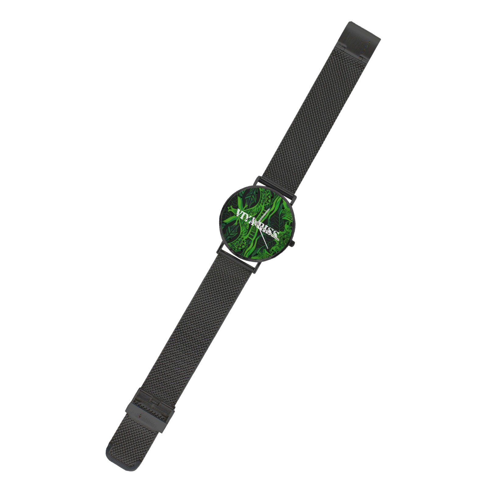 Men's Steel Watch Without Numbers- Green Tribal Print
