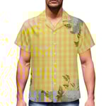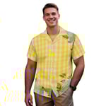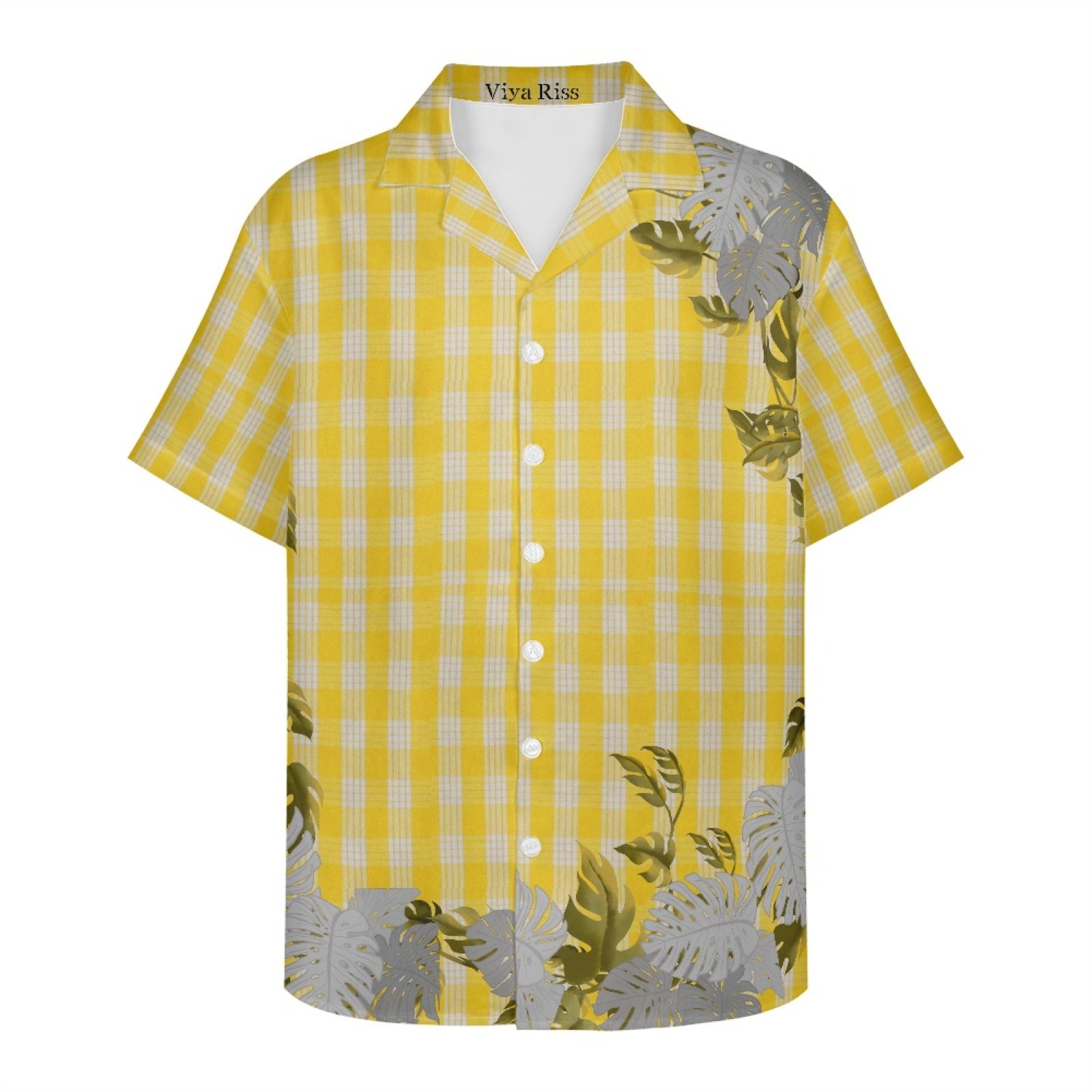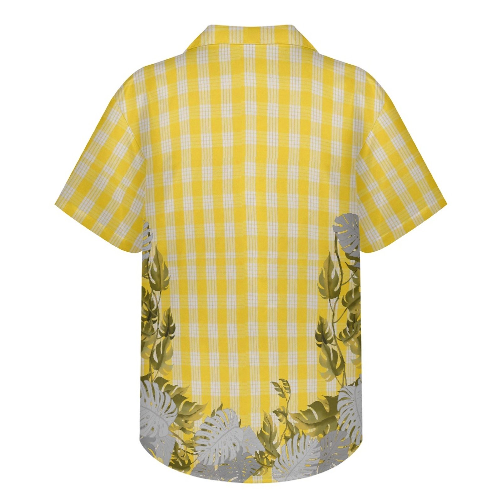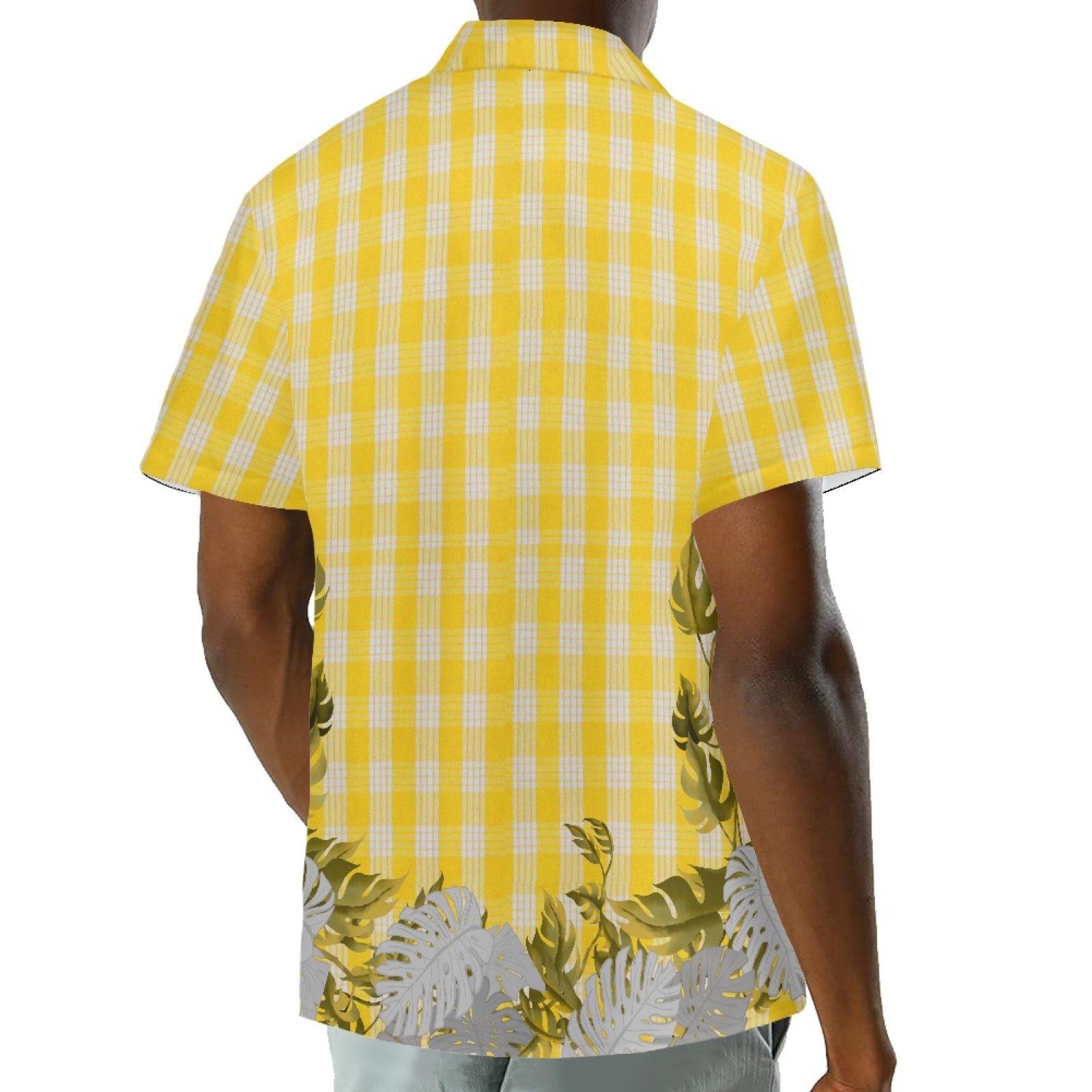 Men's Yellow Palaka and Monstera Printed Hawaiian Shirt