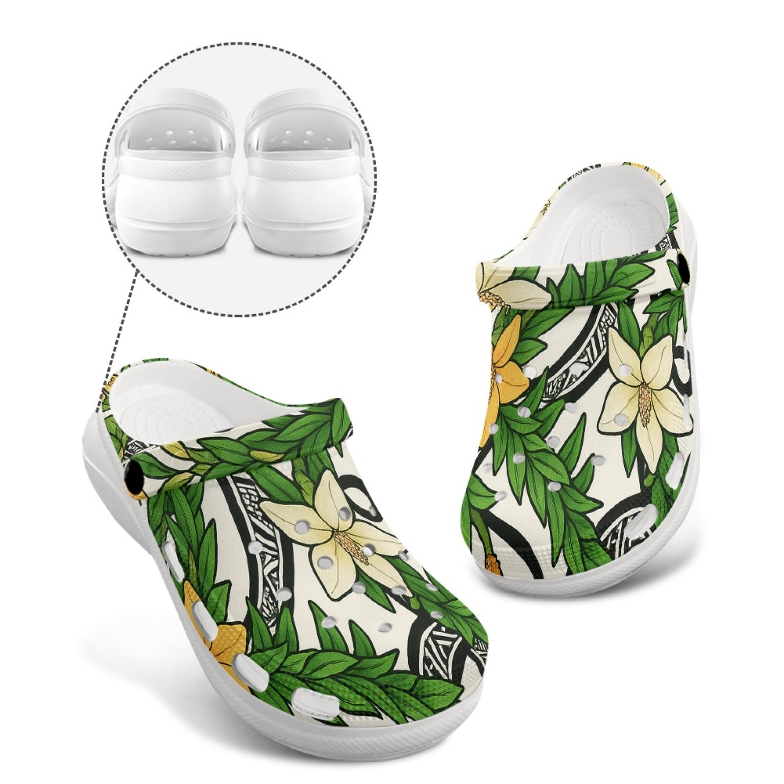 Women's Croc's- Hawaiian Tribal Maile Lei and Flowers