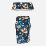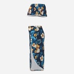 Women's Tube Top and Slit Skirt- Blue Hibiscus Print