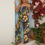 Women's Spaghetti Strap, Wide Legged Jumper- Hibiscus Tribal