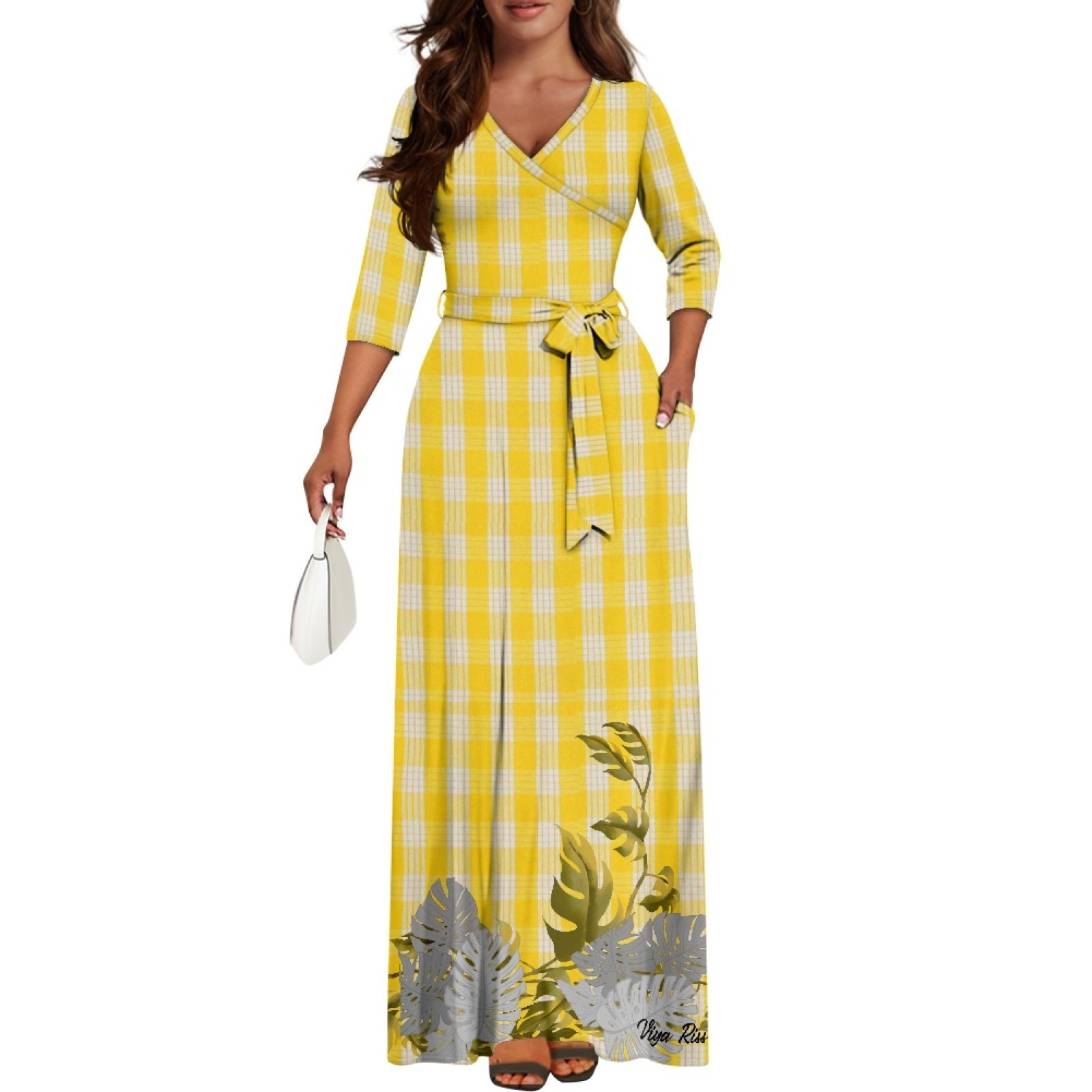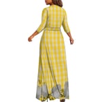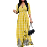 Women’s V Neck Maxi Dress- Yellow Palaka and Monstera