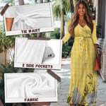 Subtle V neck tie Maxi gives you an elegant look. Made with elastic and spandex blended fabric.