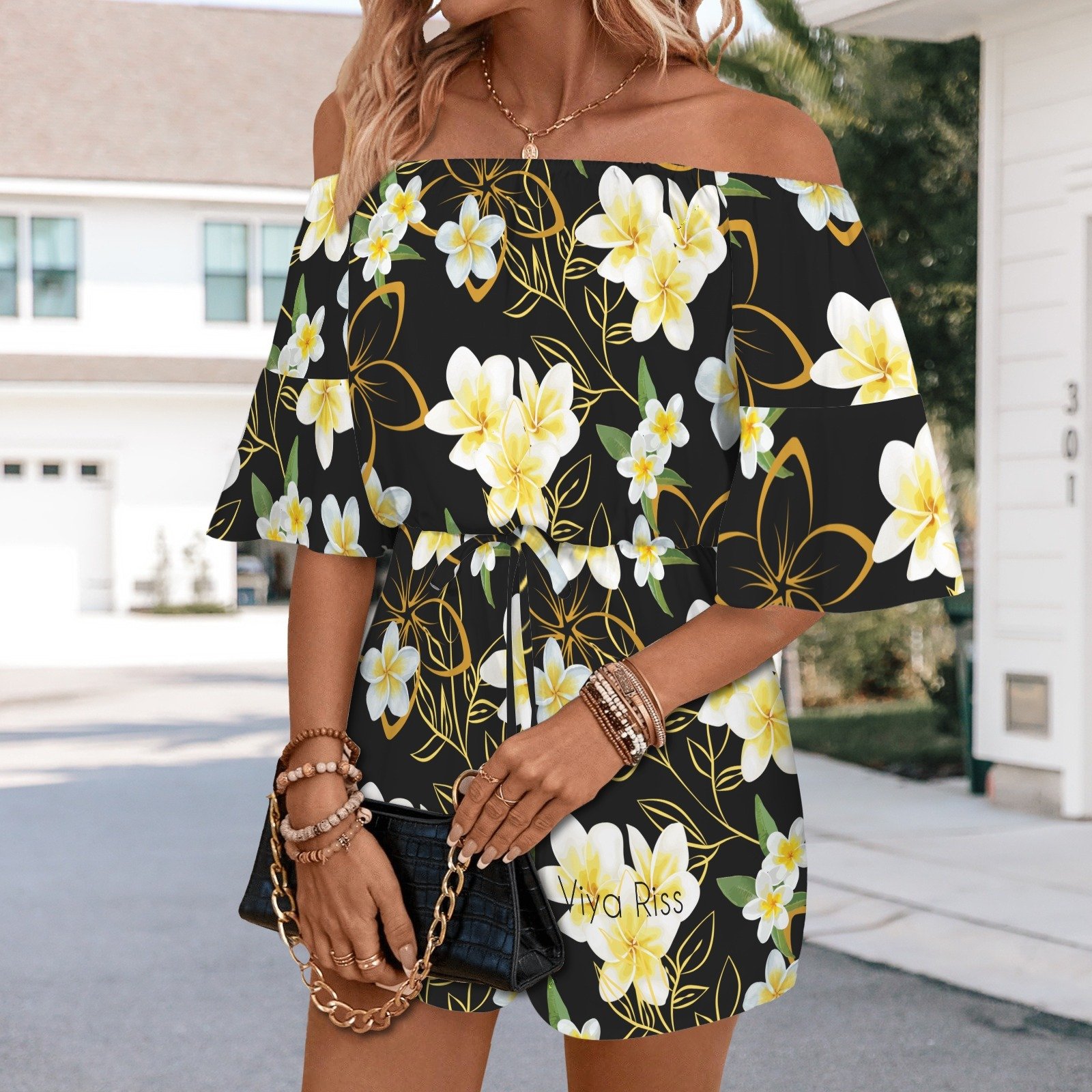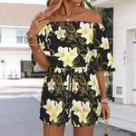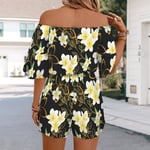 Women's Yellow Plumeria Off Shoulder Romper